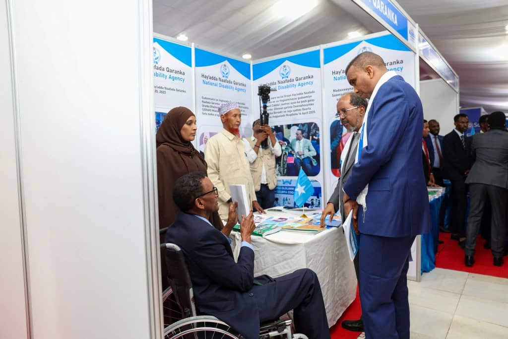 Intii lagu guda jiray booqashada bandhigga, Madaxweynaha Jamhuuriyadda Federaalka Soomaaliya, Mudane Dr. Xasan Sheekh Maxamuud, iyo Ra’iisul Wasaaraha Xukuumadda Dan-Qaran, Mudane Hamse Cabdi Barre, ayaa dhageystay Guddoomiyaha HNQ, oo soo bandhigay guulihii muhiimka ahaa ee hay’addu gaartay saddexdii sano ee la soo dhaafay, iyo qorshayaasha mustaqbalka ee u baahan taageero si loo xaqiijiyo in dadka Soomaaliyeed ee naafada ahi ay si buuxda uga qayb galaan arimaha bulshada.